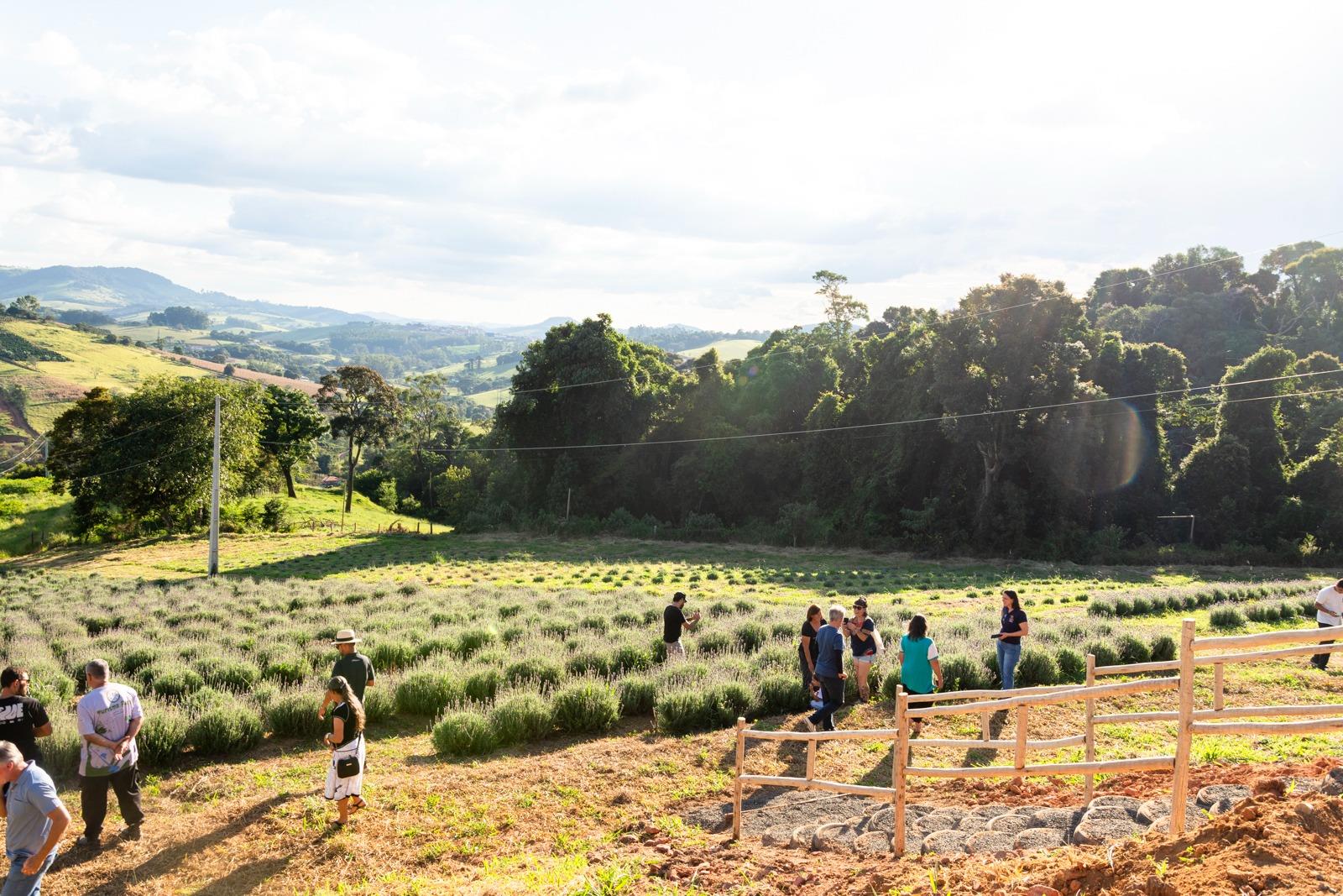 Ao final do dia, o visitante pode contemplar o pôr do sol na colina, acompanhado de opções gastronômicas como tábuas de frios e fondue.