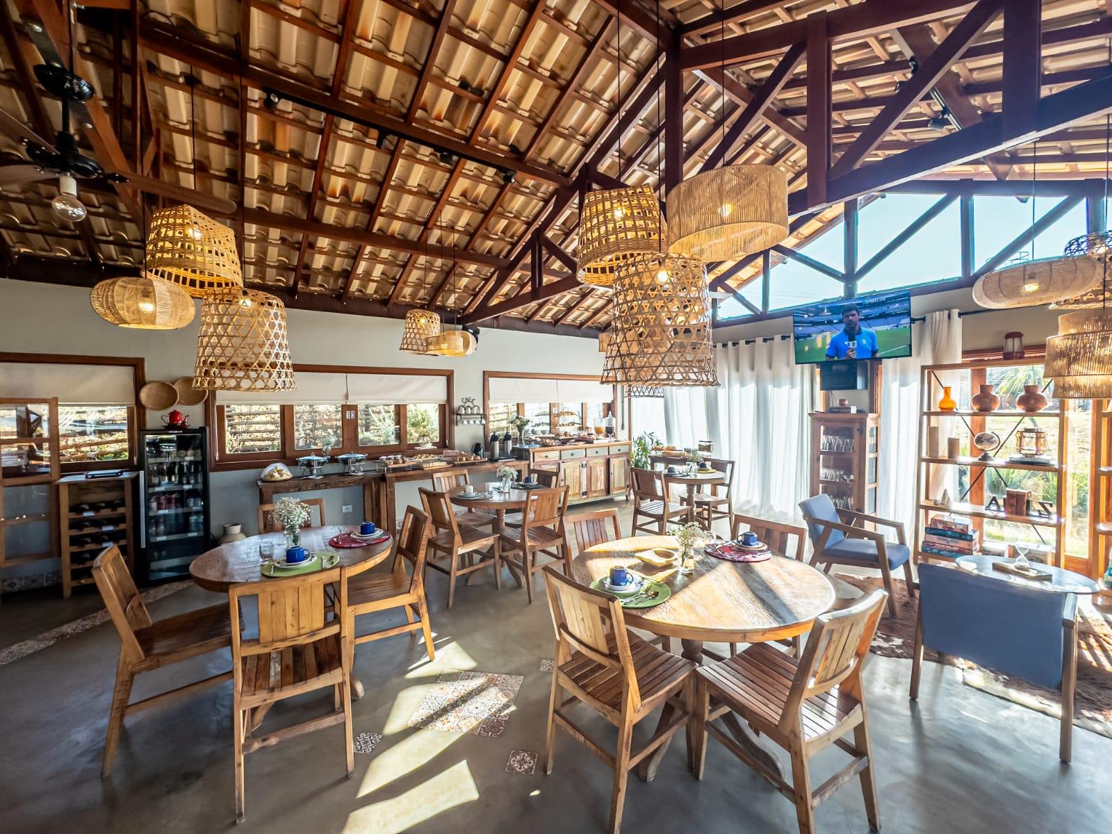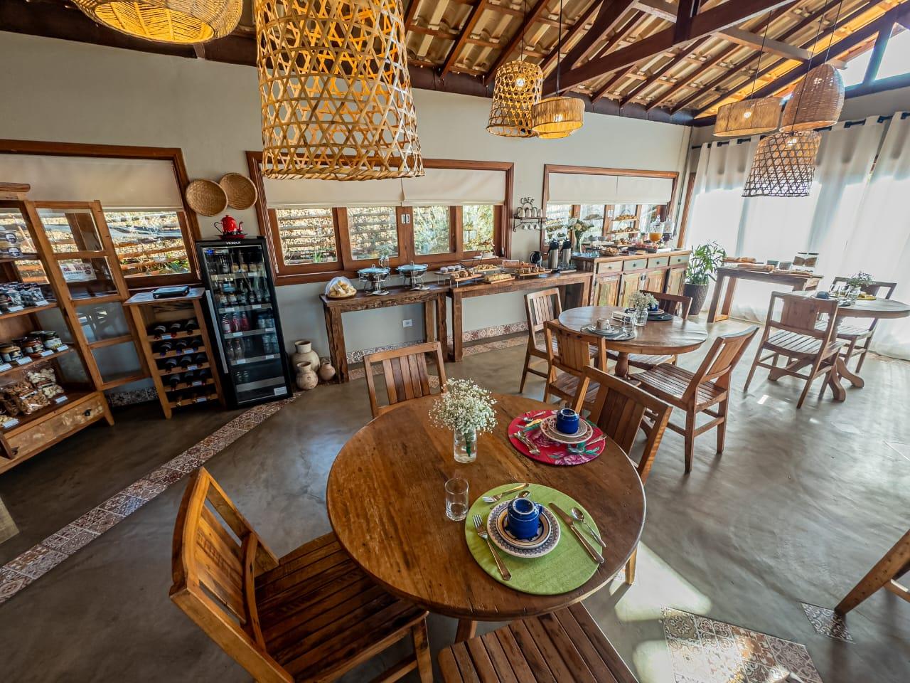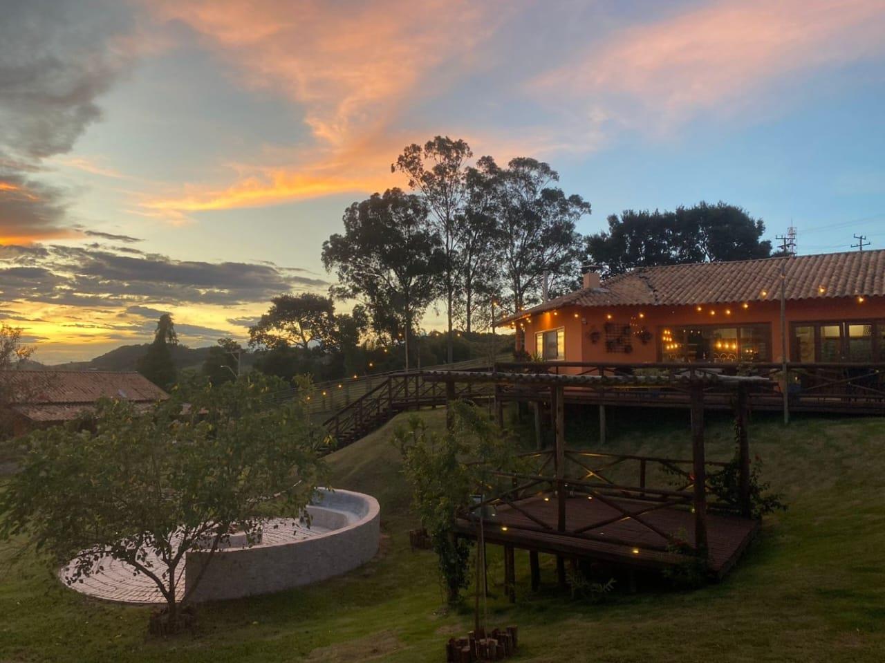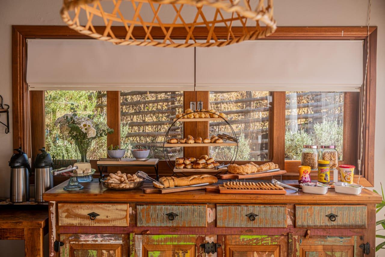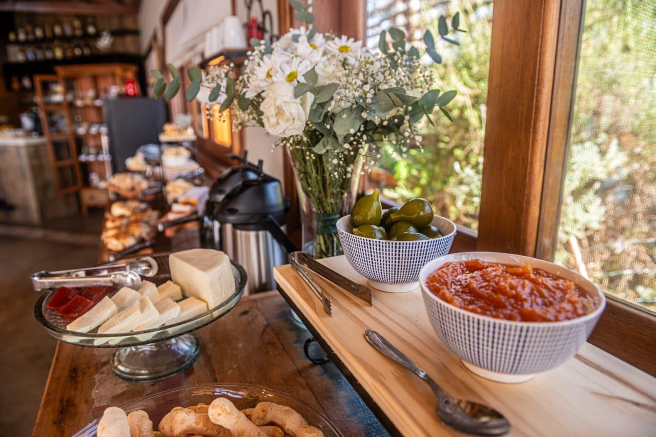 Contamos também com um salão aconchegante onde é servido o café da manhã, com uma vista deslumbrante para o pôr do sol, contemplando as terras da Serra da Mantiqueira.